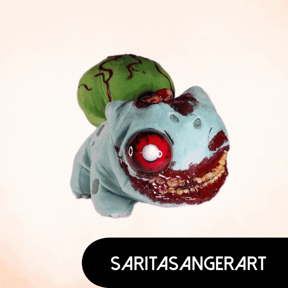 Saritasangerart Pokemon - Horror handmade bulbasaur pokemon Plush toy - Blue