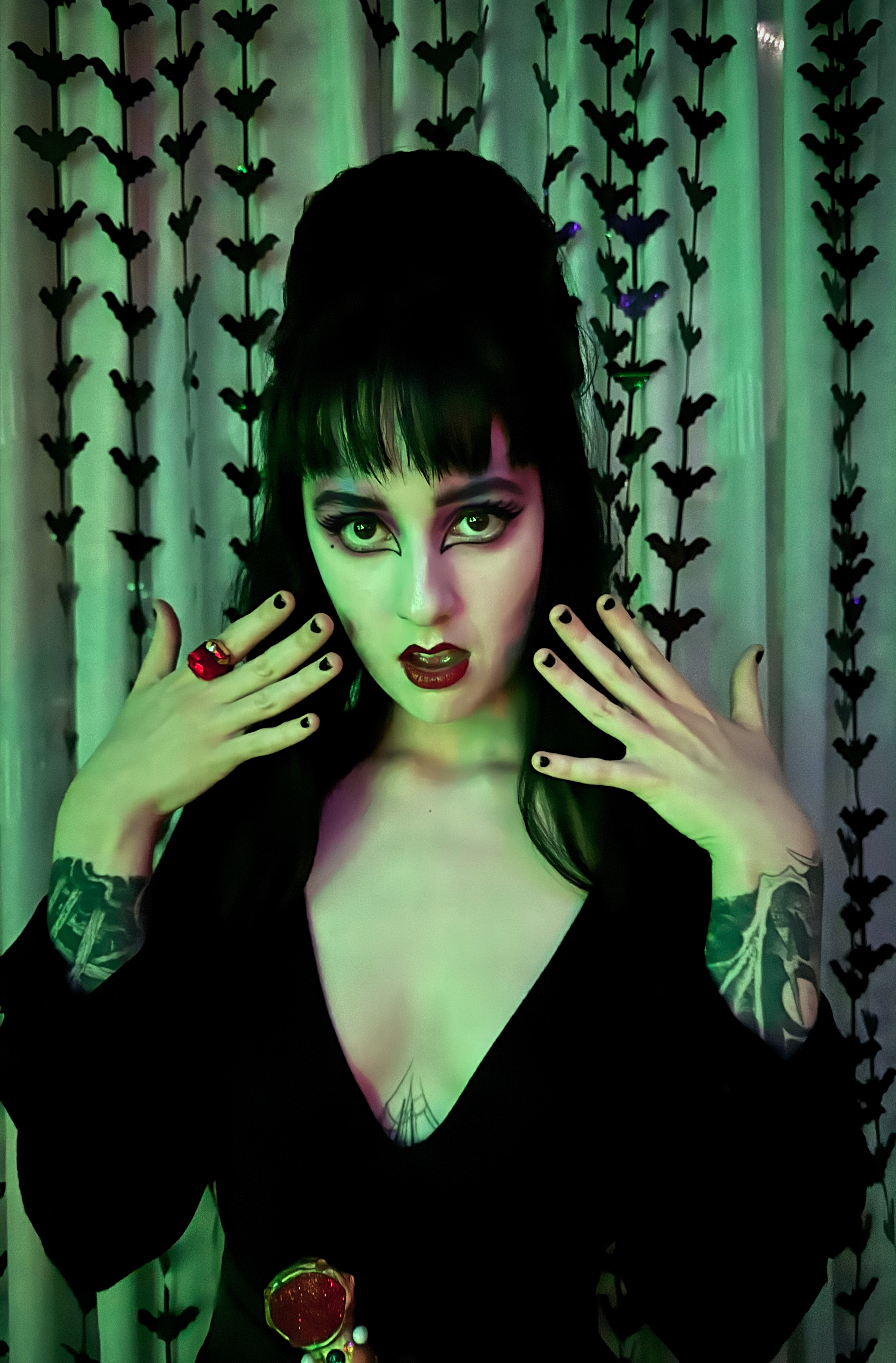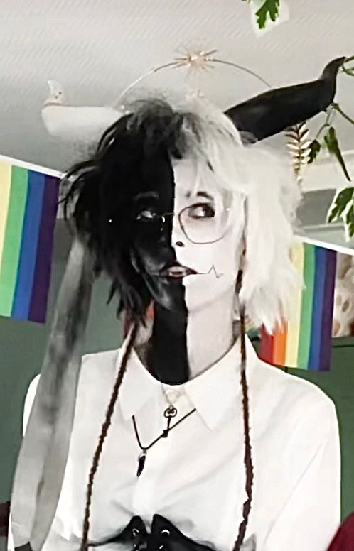 This is a cosplay from the dreamsmp, a roleplay Minecraft server. The character is Ranboo, half enderman, the other half is a mystery. There is no set design except the split skin and hair, a suit, and a crown. I added horns and fangs to really add to the monster aspect. I think that makes for a great halloween makeup look.