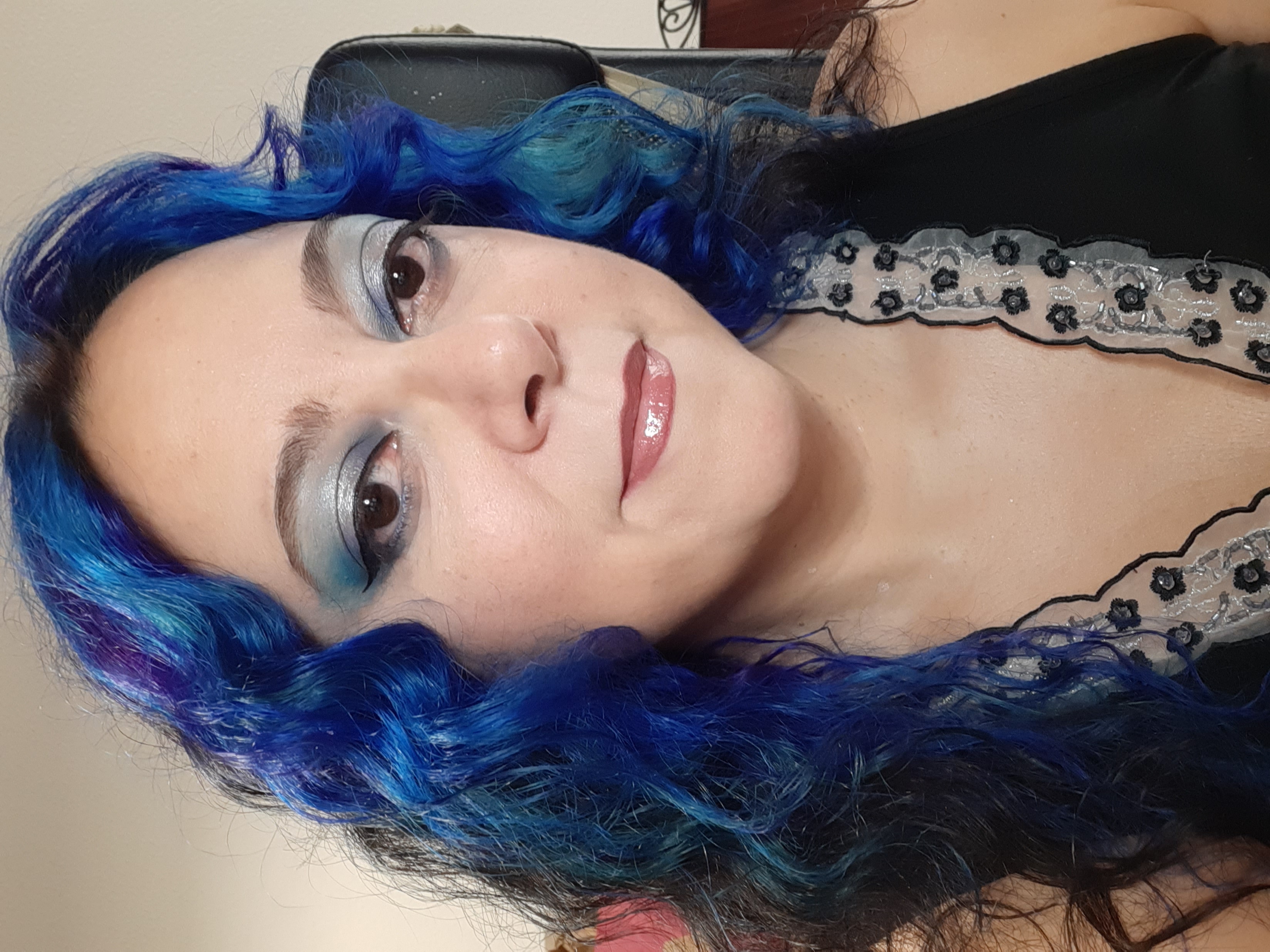 Ethereal, something between a dangerous mermaid and a goth-wanna-be fairy. But in a fun way. It brightens up my face more than the dark purple that I wore for two years before this. And every time I look at it, I can't help ear-worming "I'm blue, daba dee daba daaaa" (yes, yes, I'm old haha)