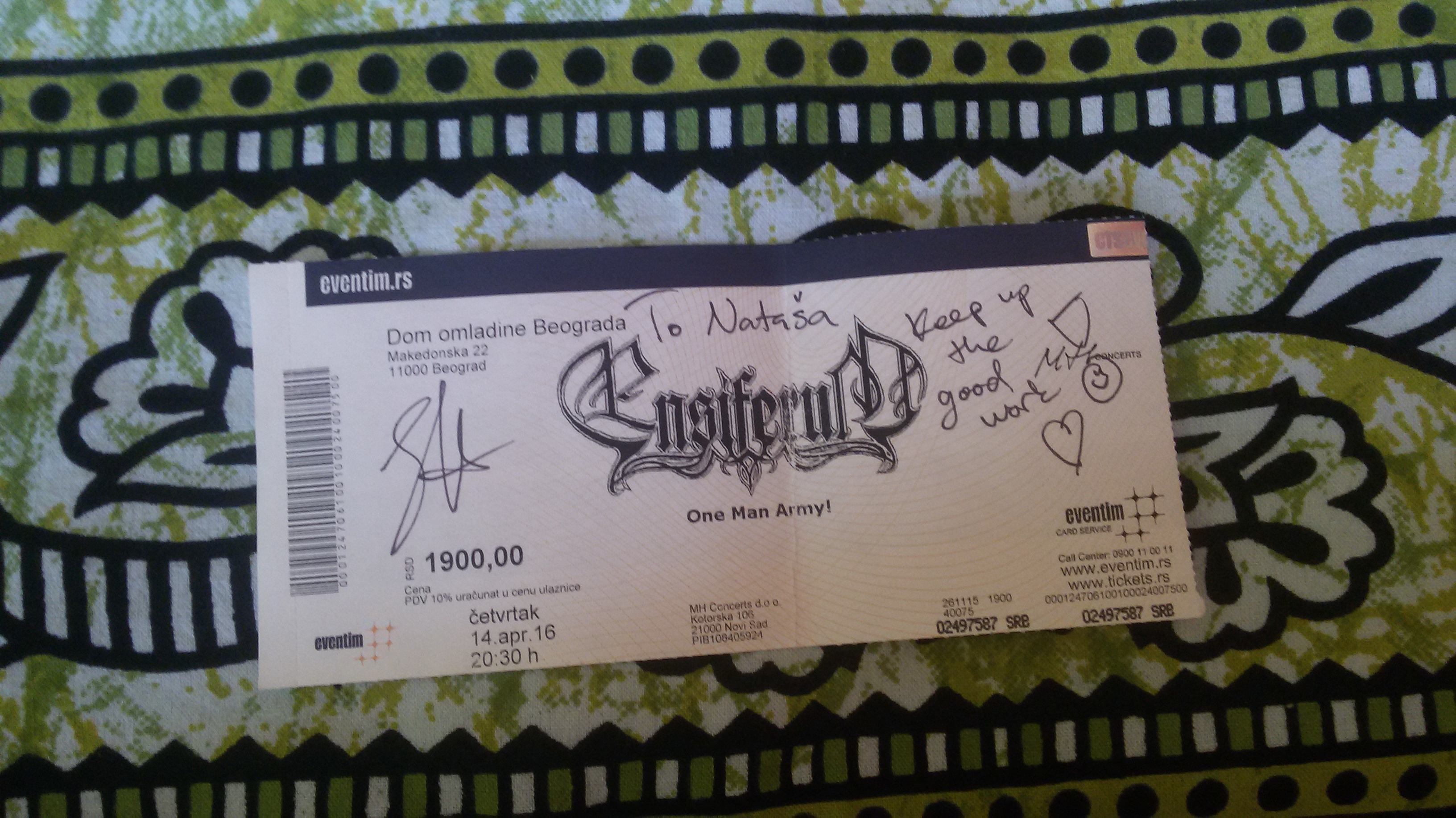 I got a compliment that I looked like a model, I got to tell him that I started playing the bass guitar when I was 15, because he inspired me to; got my name Nataša spelled correctly with a wish and hearts.