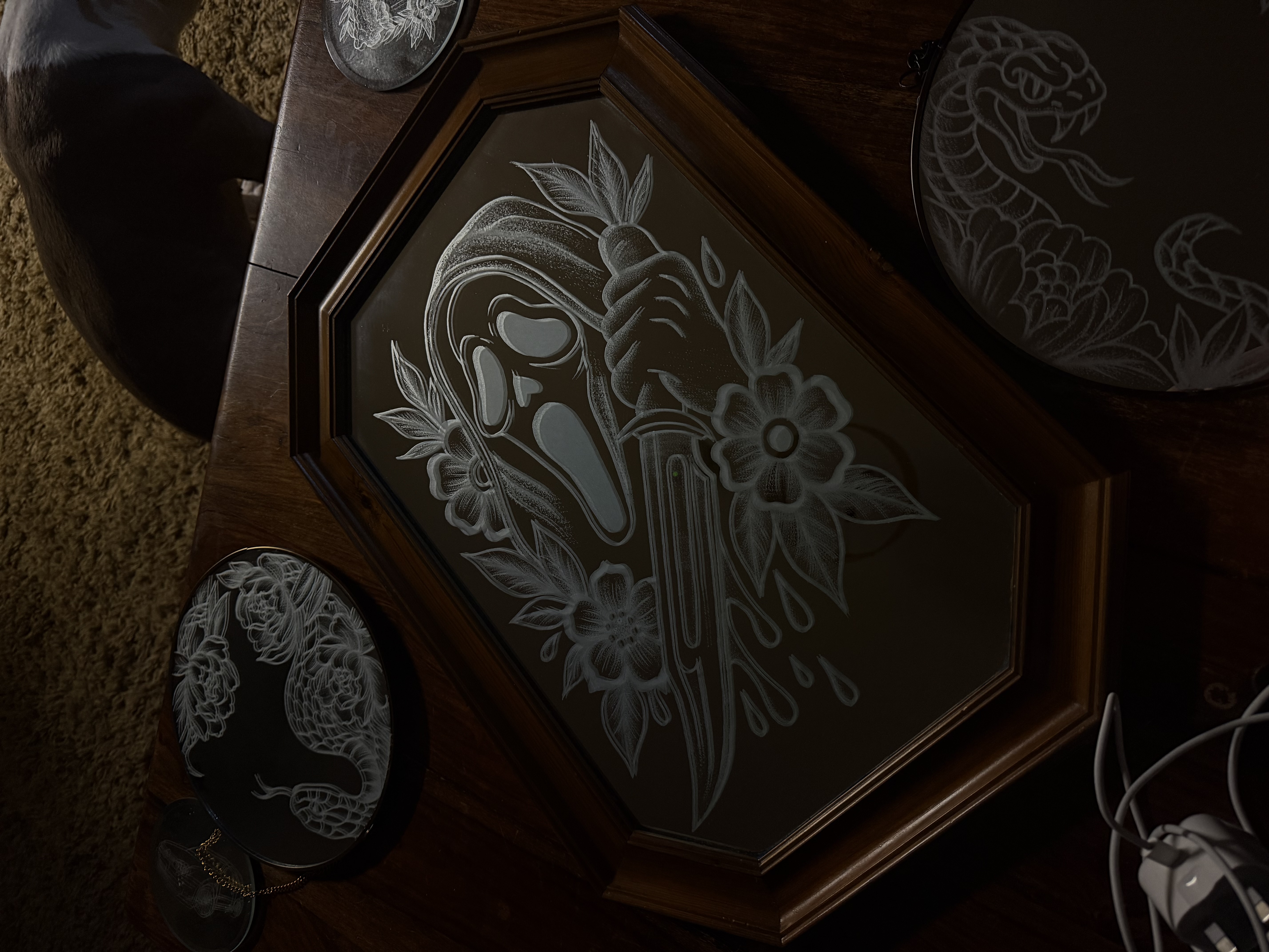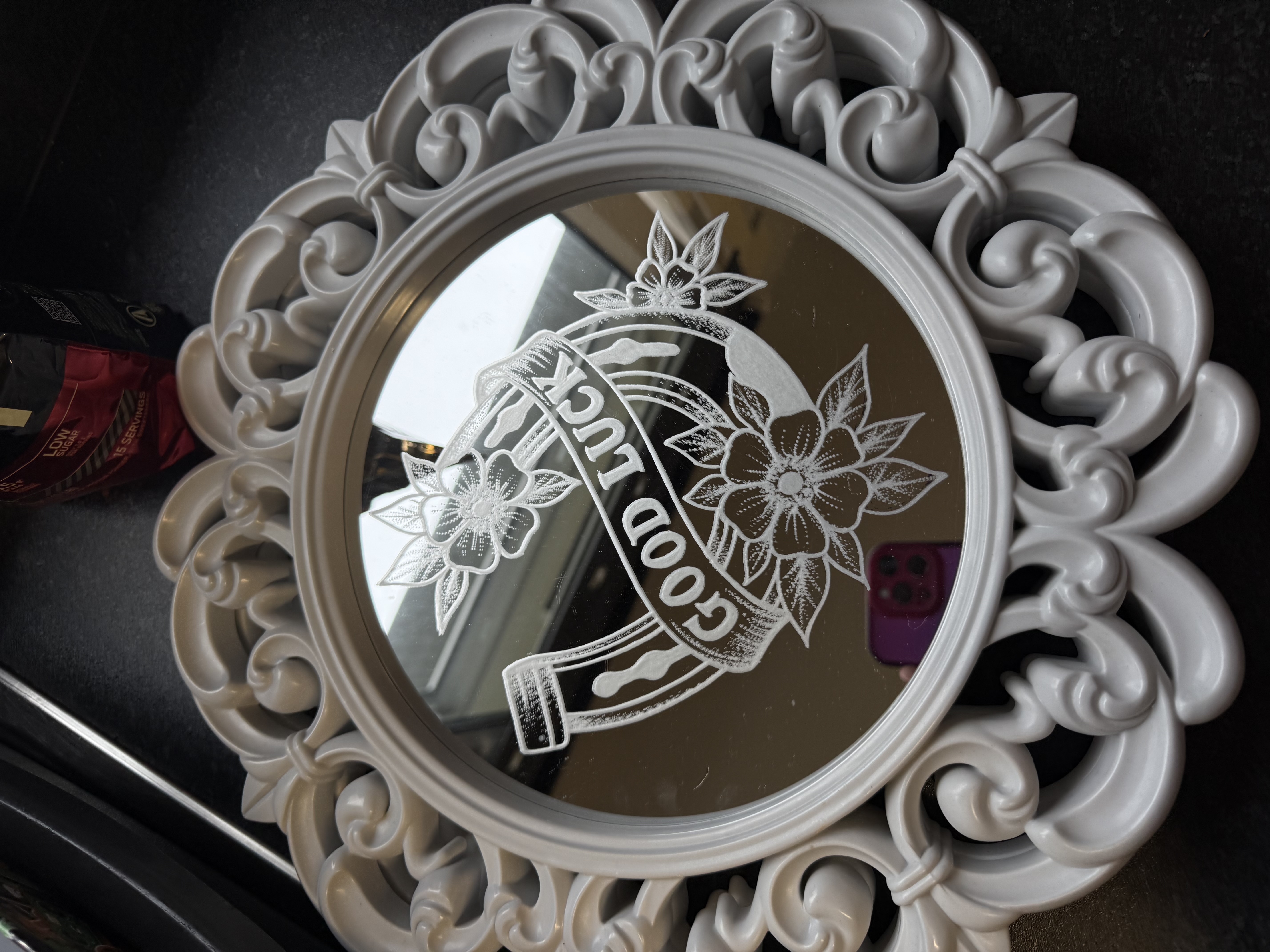 I engrave mirrors and homeware items made of glass/mirror