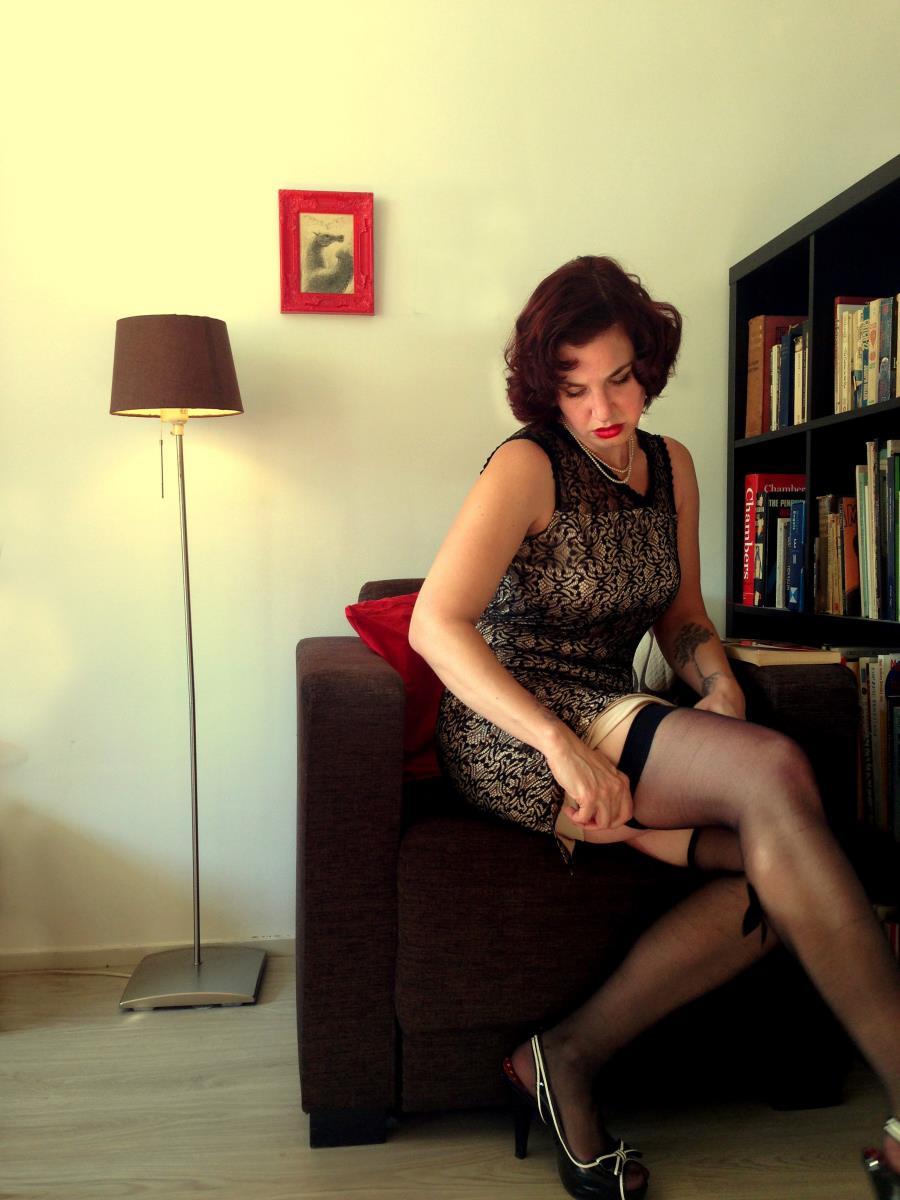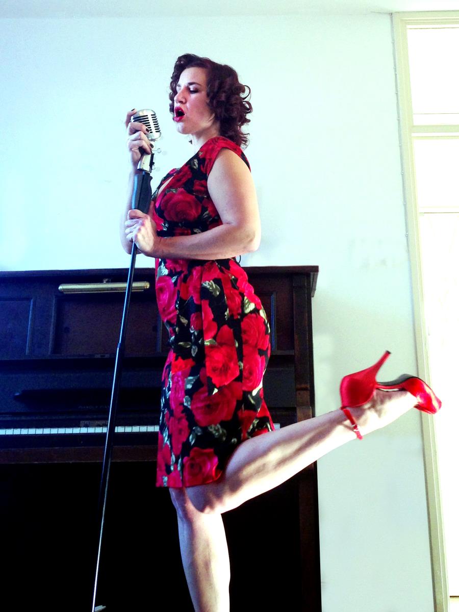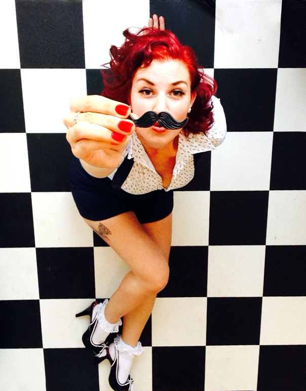 Ik ben een van oorsprong Amerikaanse vintage-loving zangeres, en mama van twee. Ik ben gek op de stijl van de jaren 40/50. Ik heb (momenteel) knal rood haar en tatoeages op mijn armen en eentje op bijn rechter bovenbeen.