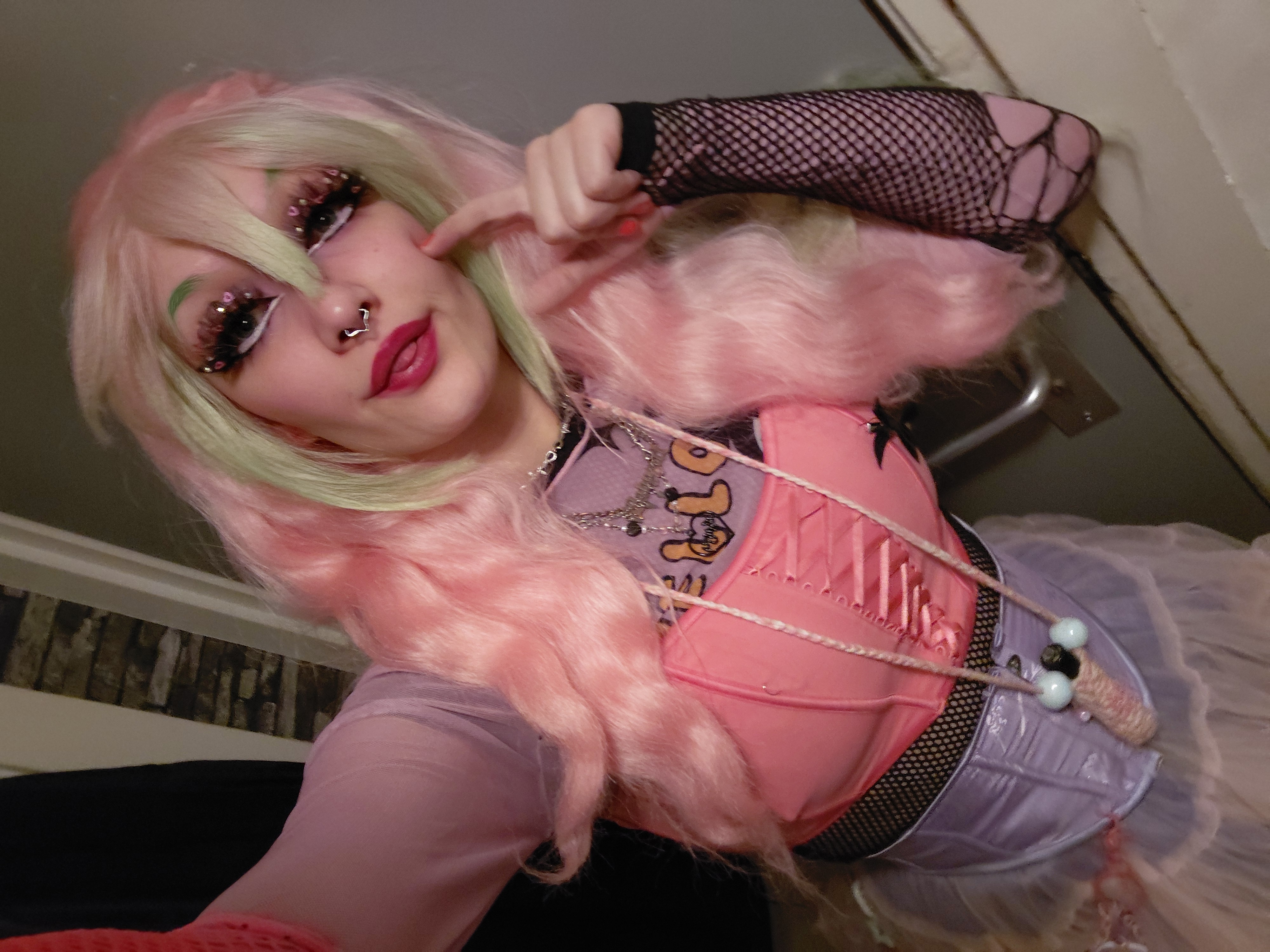 One side of my personality is like pink, barbie, hello kitty, soft, cute and fluffy. The other side is more alternative emo/punk bratz doll baddie with chains, safety pins, spikes and chunky platform boots!