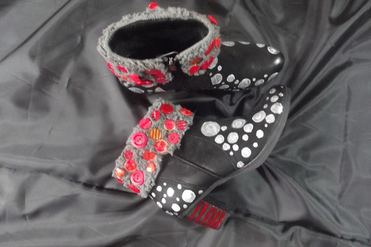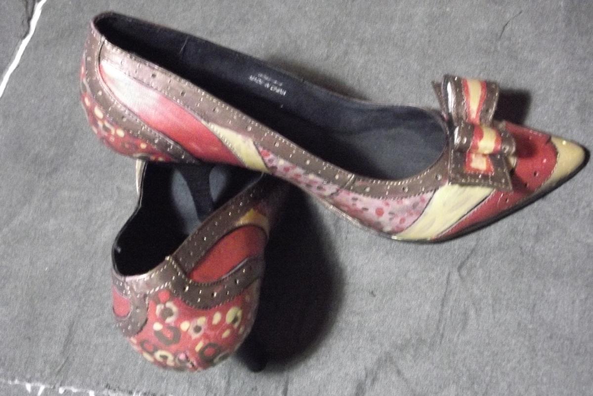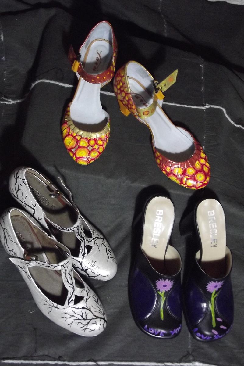 ben kunstenares die leren schoenen, riemen en tassen hand beschilderd ook in opdracht. alles zijn unieke stukken en met speciale leerverf bewerkt. verder ben ik chronisch ziek en zit in de WAO en doe aan burlesque dansen. ik heb een partner sinds 10 jaar en een klein hondje. ik heb twee halfsleeve kleuren tattoos. je kan me emailen op michelenegele@hotmail.com als je iets wilt kopen of laten beschilderen. uiteraard beschilder ik ook herenschoenen of riemen.